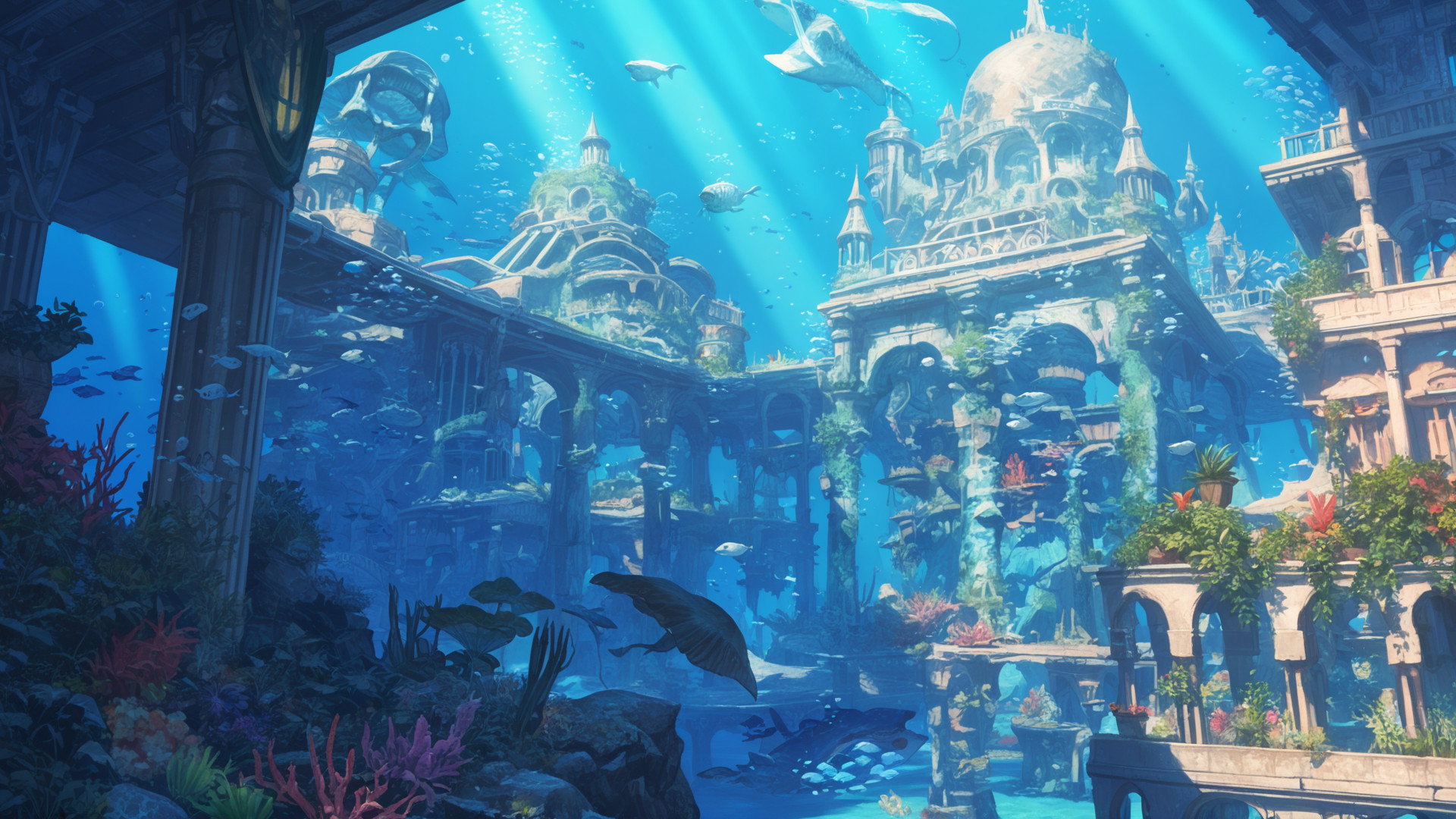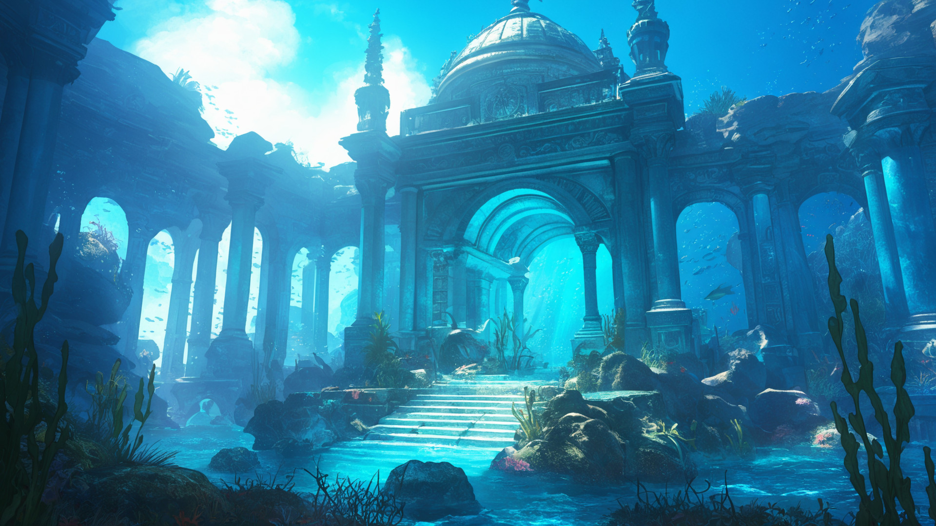 キーワード:海底のアトランティス、背景、イラスト、フリー素材