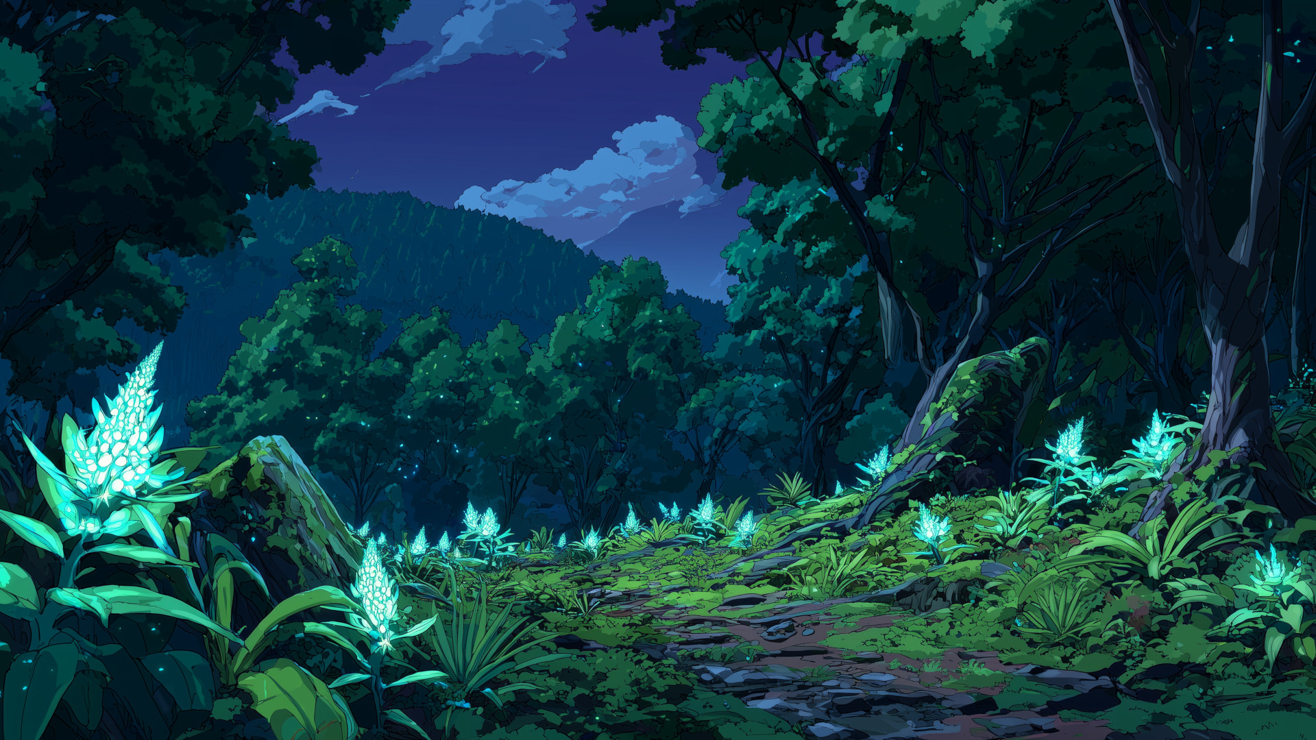 Iuminescent plants forest, 4 pictures – free images