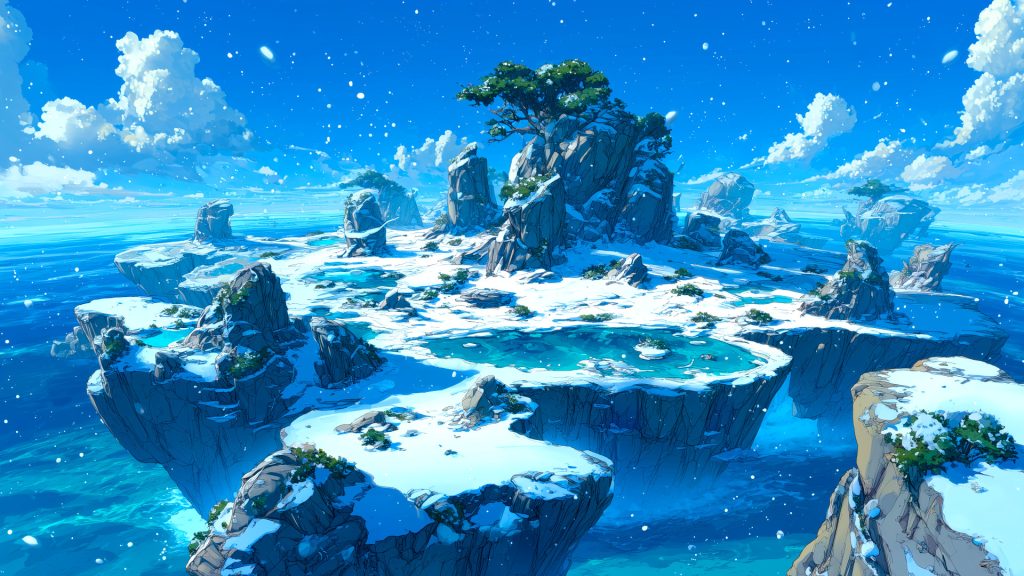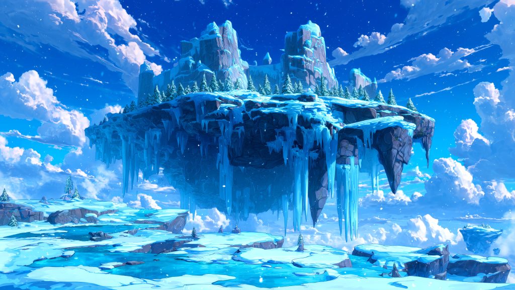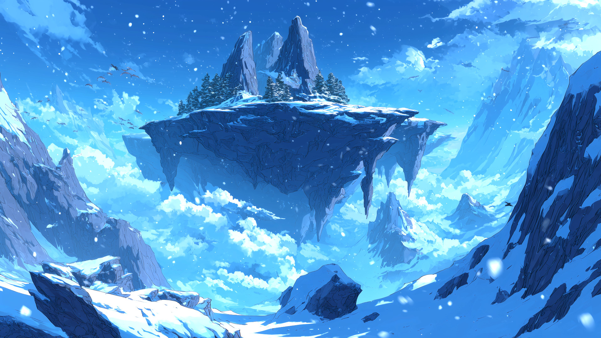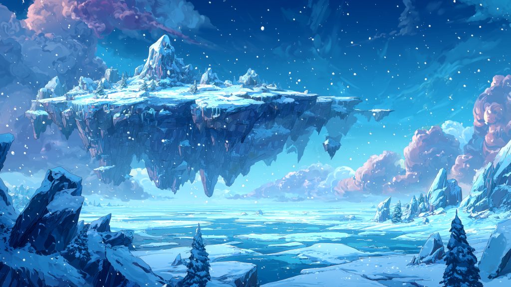 Keyword: floating island, snow, winter, background. Illustrations, free materials